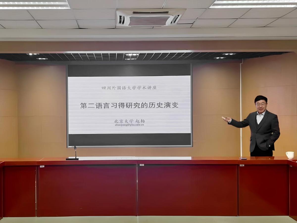 29日下午,“第二语言习得研究的历史演变”学术前沿讲座在四川外国语大学立德楼C517顺利开讲。本次讲座特邀北京大学二级教授、博雅特聘教授、对外汉语教育学院院长赵杨教授担任主讲人,由周文德教授主持。赵杨教授深耕第二语言习得、生成语法等领域,兼具深厚学术积淀与开阔国际视野。全校相关专业师生代表齐聚现场,共同梳理二语习得研究的发展脉络,探讨汉语二语习得的研究方向与创新路径。