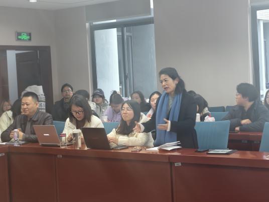 在互动提问环节,中文学院教师魏智慧就“如何构建讲好中国故事与提升中文国际地位之间的良性互动关系”提出问题。对此,赵杨老师回应指出,中文教育本身也是一种外交实践,应遵循外交原则:有些内容“只说不做”,有些“只做不说”,还有些则需要“既说又做”,在分寸与策略中实现语言传播与国家形象塑造的协同推进。