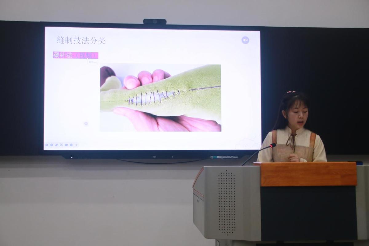 香囊文化穿越千年,底蕴深厚。卢贝贝老师以《红楼梦》中的经典场景为引,娓娓道来香囊的演变脉络:先秦时期称“佩帏”,秦汉时多用于药用保健,唐宋渐成男女传情信物,至明清,其情感寄托的功能愈发凸显。这份流淌在时光里的技艺,让现场师生得以触摸传统文化的温度。