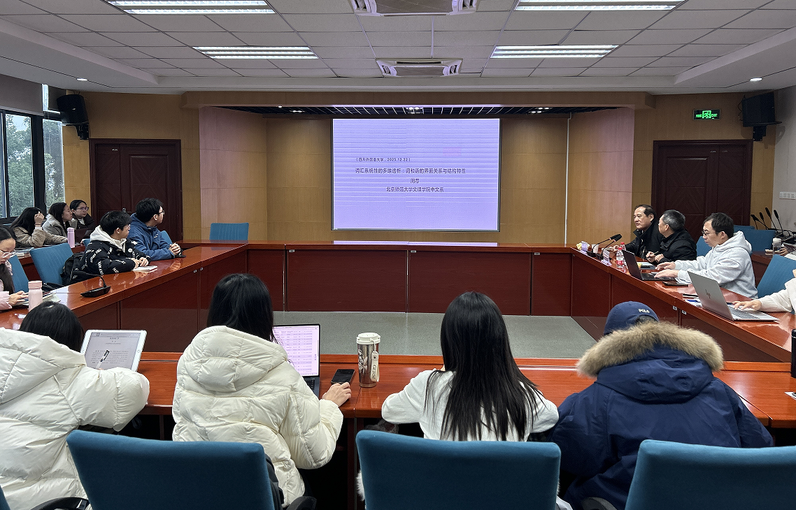 在互动环节中,师生围绕词汇研究的系统性建构、共性研究与个性描写的平衡等问题积极提问,周荐教授结合自身研究经验作出深入回应。周文德教授在总结中高度评价了本次讲座的学术价值,勉励在场师生持续深化对汉语词汇系统的研究与思考。