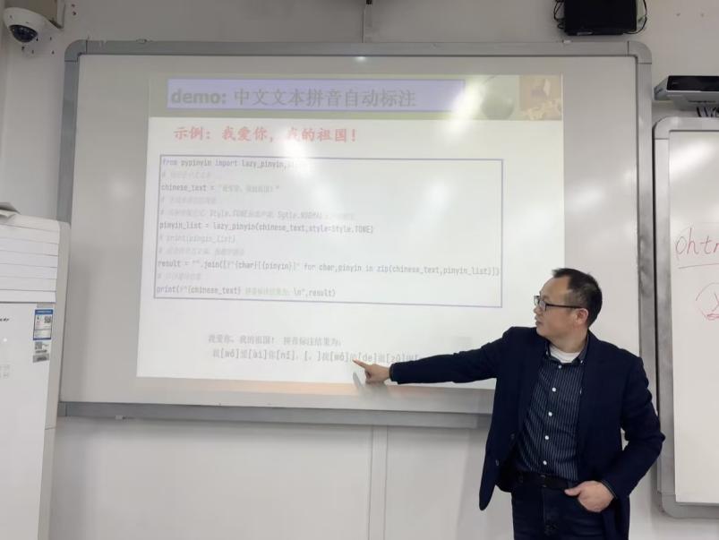 10月30日,吴锋文老师在“精彩一堂课”公开示范课中,生动展示了Python文本预处理技术的教学实践,体现了“做中学”的教学理念。吴老师聚焦文本预处理核心操作,围绕中文字体转换寄拼音自动标注、英文文本大小写转换、文本空格与换行去除,以及字符替换、文本分割等知识模块展开教学。他不仅在电脑上逐步示范操作,还逐一看完每位同学的代码运行情况——从逐行演示代码,到针对学生实操问题逐一讲解。在吴老师专业的指导下,同学们逐步掌握了用Python高效处理文本和清洗网络语料的方法技巧,也慢慢理解预处理是文本分析的基础,规范数据对后续分析准确性的关键作用,这堂课在满满的收获中结束。