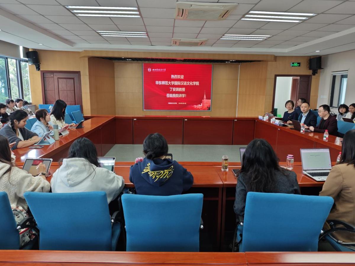 3月13日,四川外国语大学中国语言文化学院新学期首场学术讲座顺利开讲。华东师范大学国际汉语文化学院丁安琪教授受邀担任主讲人,作题为“智慧教育理念下第二语言教学法的变与不变”的专题分享。讲座由中国语言文化学院院长胡登全主持,学院师生到场聆听学习。