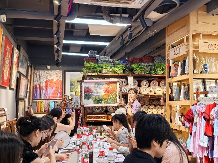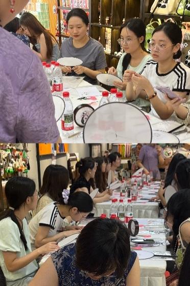 为感受传统文化的魅力,亲自体验身边的“非遗”,中国语言文化学院的师生们不顾夏日高温炙烤,相聚磁器口古镇,共同欣赏并体验乱针绣这一传统手工艺。这份夏日的感动,将沉积为记忆的珍珠,成为每个人心中传统文化宝库的珍藏。