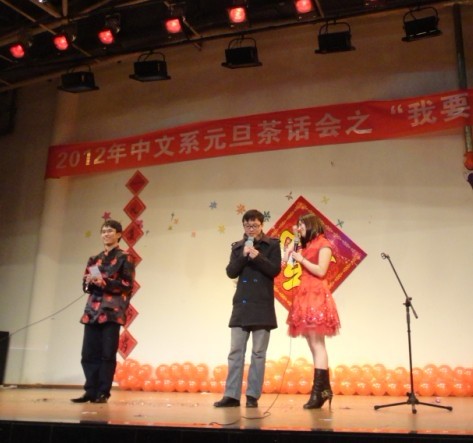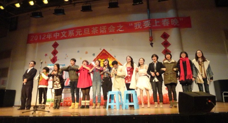 最后中文系2012年元旦茶话会“我要上春晚“在杨晓莲老师与同学合唱的一曲《难忘今宵》中落下完美帷幕。