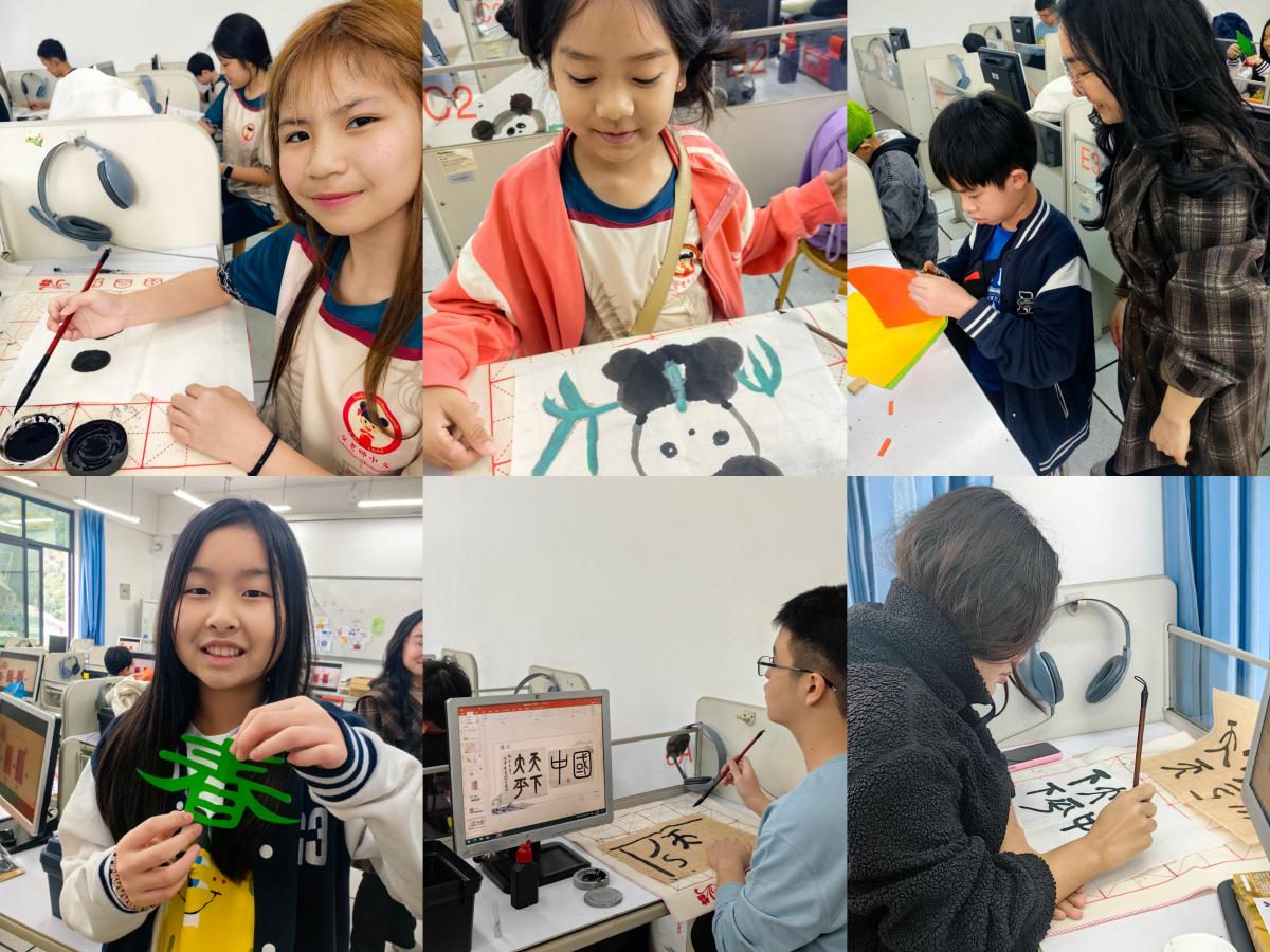 春令营期间,我校开设的课型丰富、层次分明的中文课,让营员感受到了学习中文的乐趣;安排的书法、绘画、剪纸、篆刻等中华才艺课,极具中国特色,深受营员喜爱;组织的成渝地域文化体验活动,既让营员体验了川剧变脸、皮影戏、糖画、蜀绣等巴蜀非遗技艺,又让他们感知了巴蜀文化风情。