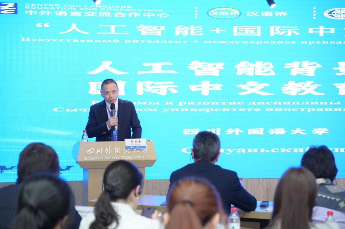 下午14时,胡登全院长首先发表主旨发言。他重点介绍了学校在人工智能背景下推进国际中文教育学科变革的具体举措,指出学校通过提升教师数字素养、探索线上线下混合教学模式、鼓励教师申报“AI+中文教学”创新项目、开发智能教学工具及共享资源库等举措,推动了人工智能与国际中文教育的融合发展。胡院长认为,未来川外国际中文教育学科应深度拥抱人工智能,教学上积极引入AI教学工具,科研上鼓励教师探索AI成果应用,着力培养“中文+AI”复合型人才,提升学科国际竞争力。