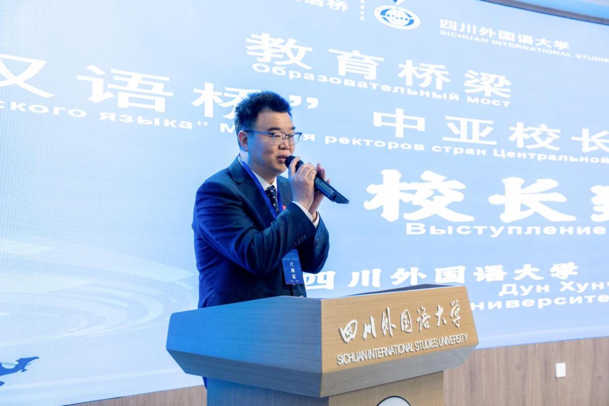 阿卜杜拉萨卡夫中学校长阿斯兰・赞卡比洛夫在发言中感谢川外的精心筹备与热情接待。他指出,“一带一路”倡议为中亚国家带来了前所未有的发展机遇,更为教育领域的交流合作开辟了广阔天地。他呼吁双方打破地域限制,让更多中亚学生有机会接触到中国优质的教育资源,感受中国教育的魅力与活力。阿斯兰校长希望能够借鉴中国在教育信息化、国际化等方面的先进经验,推动中亚国家教育事业的现代化进程,提高教育质量和水平。