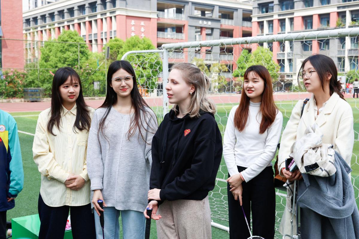 羽毛球互动体验区则充满青春朝气。我院留学生与初中生自由组队、默契配合,挥拍间尽显灵动步伐,跳跃中迸发蓬勃活力,喝彩声、加油声此起彼伏。赛后,俄罗斯留学生沈彦雯分享了俄罗斯人是如何保持健康以及自己国家的传统体育活动,如游泳、踢足球、蒸桑拿等等。在这场交流中,语言壁垒悄然消融,陌生感在挥洒汗水中消散,团结协作的精神与青春昂扬的风貌,成为跨文化交流最动人的主旋律。