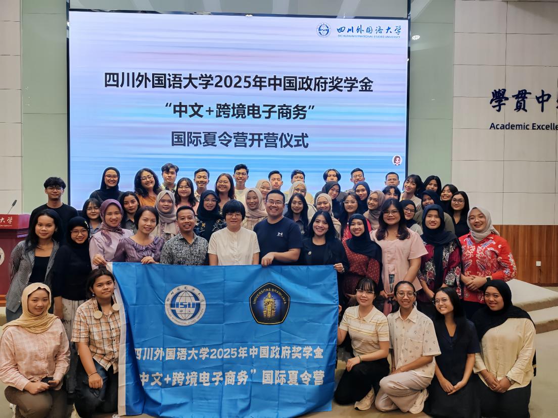8月8日上午,由学校主办、我中文学院院和国际工商管理学院联合承办的2025年中国政府奖学金“中文+跨境电子商务”国际夏令营正式开营。50名印尼布拉维加亚大学师生正式开启为期24天的“中文+跨境电商”管理人才研修之旅。我院薛红书记、教师代表张洪健、夏令营全体营员及工作人员参加了开营仪式。