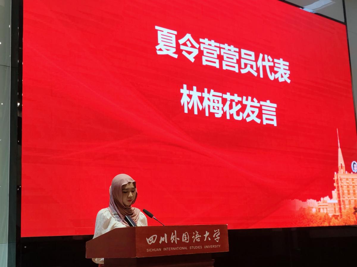 布拉维加亚大学学生林梅花代表所有学员向中国政府提供的宝贵奖学金机会、川外的精心安排以及中文学院老师们的辛勤付出表示衷心感谢。她表示,夏令营不仅全面提升了同学们的商务中文应用能力,还让大家深入学习了中国成熟的直播模式、供应链等管理经验,更让大家掌握了平台运营、数字营销、直播带货等跨境电子商务技能。林梅花承诺一定不会辜负领导和老师们的期望,努力成为“数字丝路”的民间使者,用青年人的创新实践,推动印尼和中国经贸合作和友好往来。