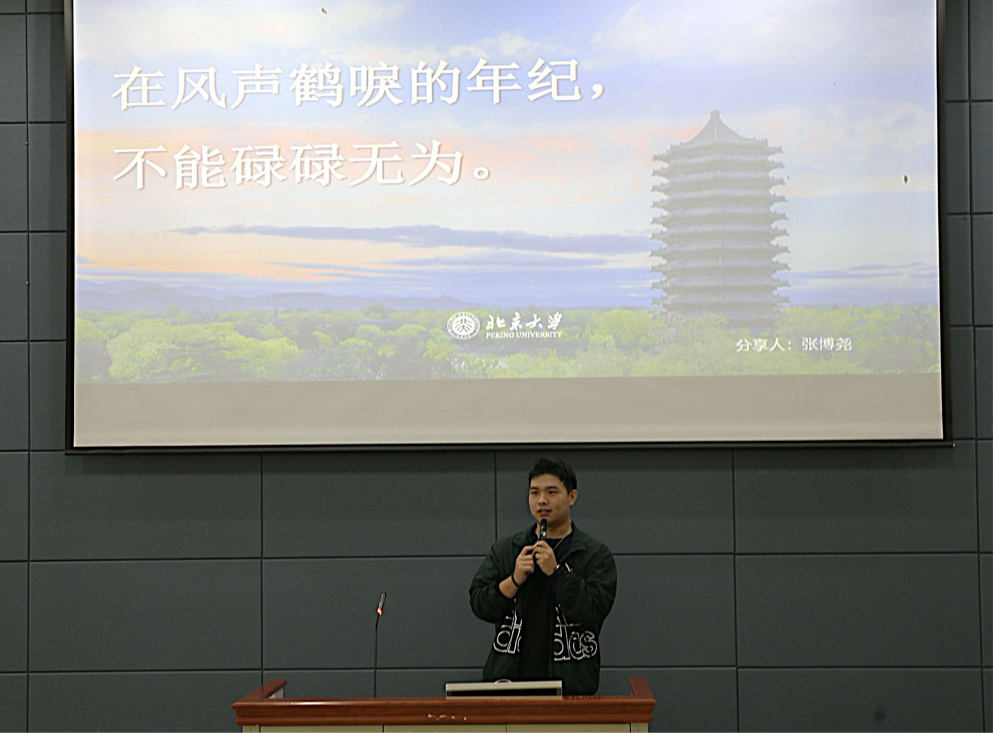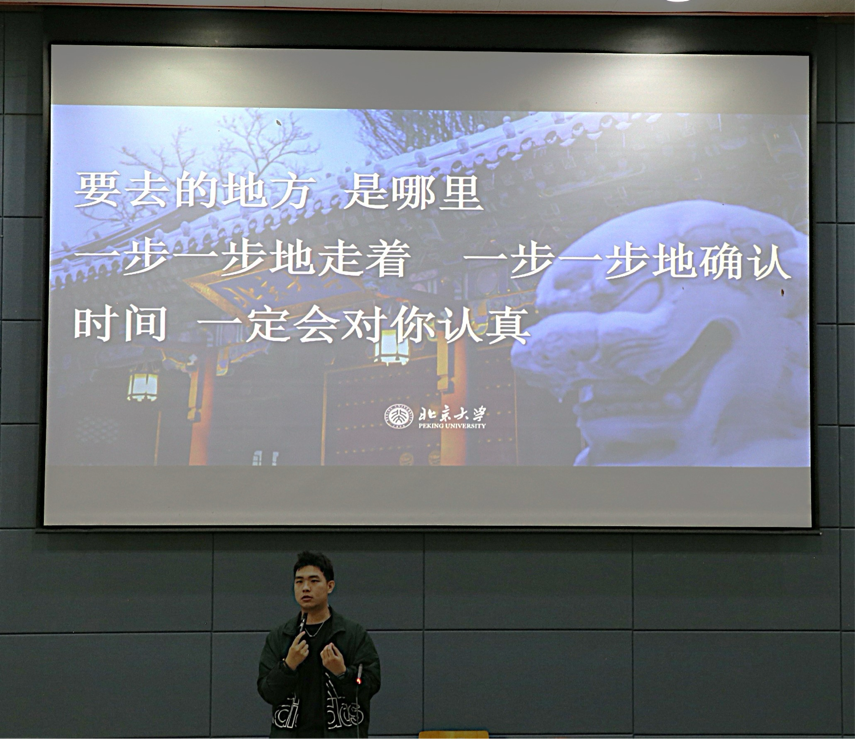 谈及人脉积累与资源利用,张博尧学长以“人,是他身边最亲近的人的均值”为引,叮嘱同学们珍惜身边优质资源,主动与辅导员、师长、同窗沟通交流,借助身边力量助力自身全方位成长。随后,他通过分享在北京大学求学期间的开学典礼、课堂学习等照片,讲述旁听戴锦华老师课程时的震撼与收获,生动展现顶尖学府的学习氛围。他提醒在场新生要自觉抵制短视频带来的浮躁影响,走出“奥德赛时期”的成长迷茫,树立充分自信;同时肯定我校办学平台优势,鼓励大家心怀更高追求,深耕专业知识、扎实英语能力,向着更高层次的院校稳步迈进。
