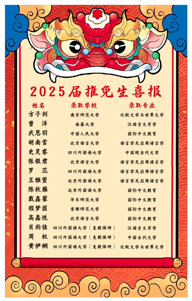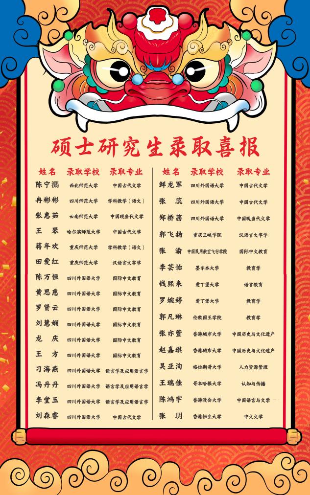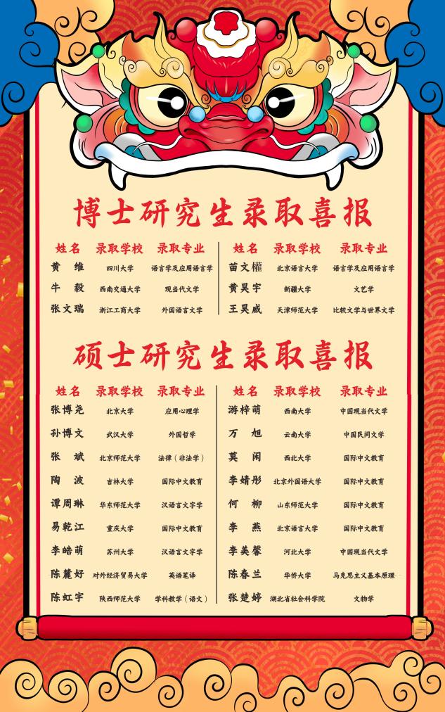 我院2025届共有70位毕业生成功迈向学术新征程,其中6人考取博士,64人考取硕士(名单附后,排名不分先后),热烈祝贺我院2025届学子在全国各高校博士、硕士研究生招生录取考试中斩获佳绩,以优异表现开启人生新篇章。